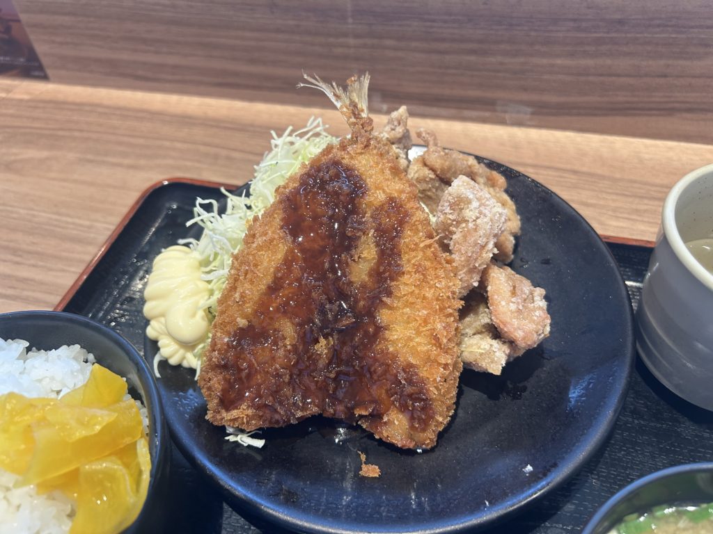 唐揚げ定食売り切れ。アジフライ定食に唐揚げがつくと聞いて頼んだ(笑) 凄いボリ... -