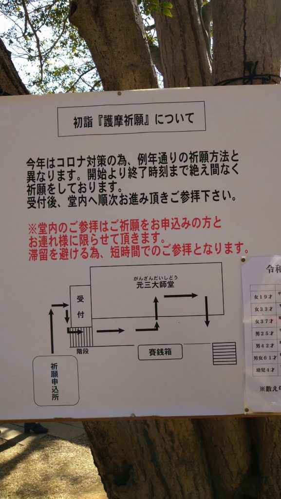 例年、ここで護摩祈祷を受けるのですが、今年はコロナ対応でいつもと違いました。