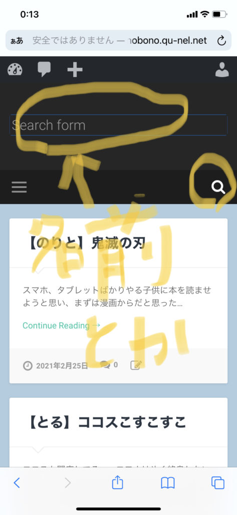 虫眼鏡ボタンを押すと、検索画面が出てきます。例えば「のりと」を検索します。のりとの後にエンターキーか検索ボタンを押してください。