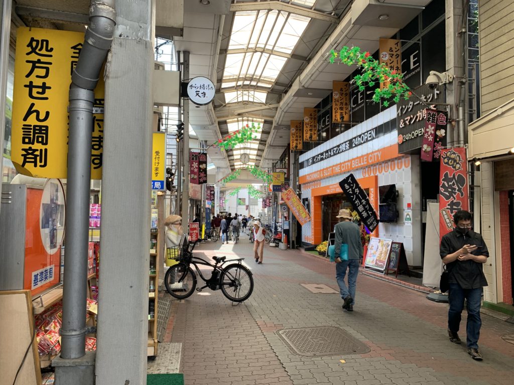 商店街は結構賑わってて、揚げ物屋や焼き鳥屋が多い印象。奥に進むと更に栄えてました。