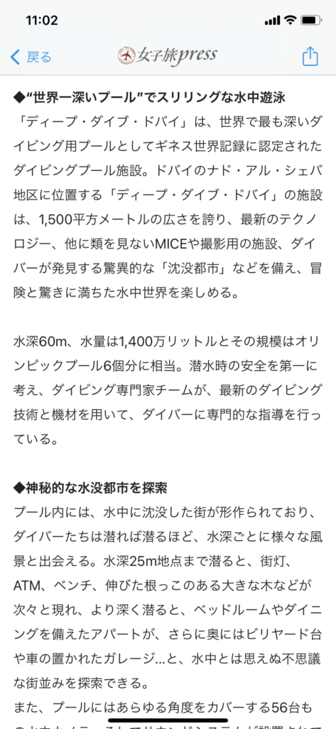 世界最大級のスキューバダイビング施設です。潜ると水没した都市をイメージした水中都市などもあります。凄いの作るよね!スキューバライセンスある人は是非ドバイへ!