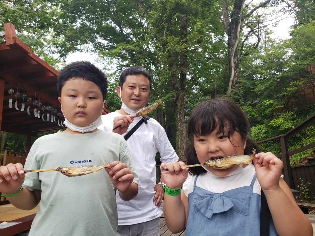 • マス釣って鮎食べたんだ。得したね。