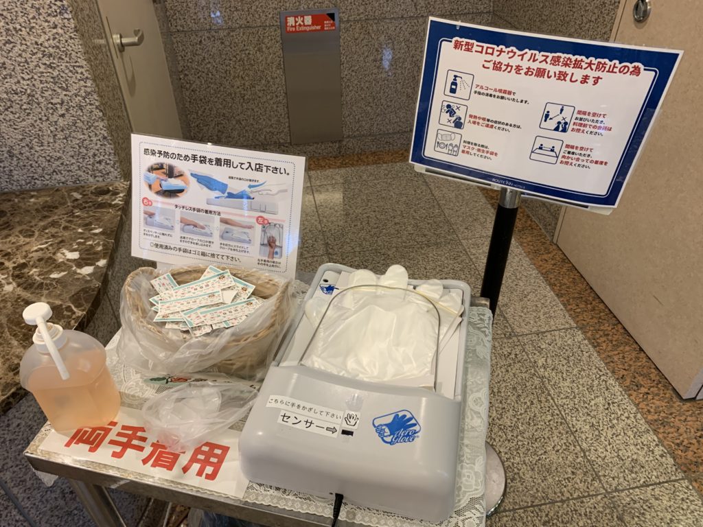 手袋は当たり前だよね。すごいのは手袋装着マシーンです!①手をかざします。②エア... -