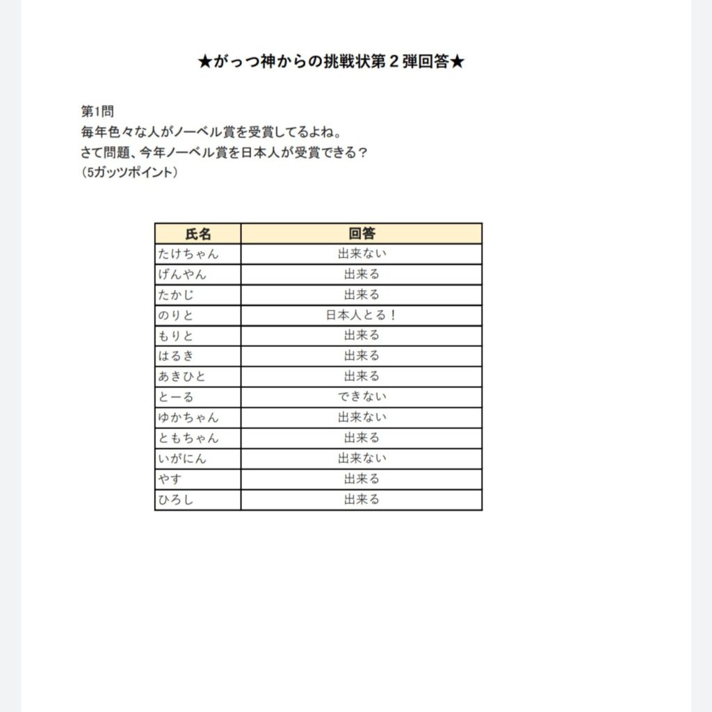 ガッツ神からの挑戦状第2弾に参加してくれてありがとう。皆の回答を掲載します。 ...