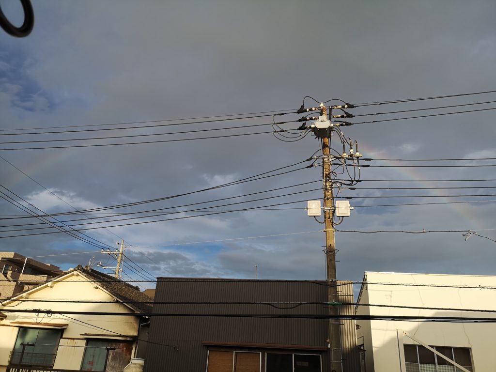おはようございます。 朝方に降った雨で西の空に虹が出ていました。 バックが曇り... -
