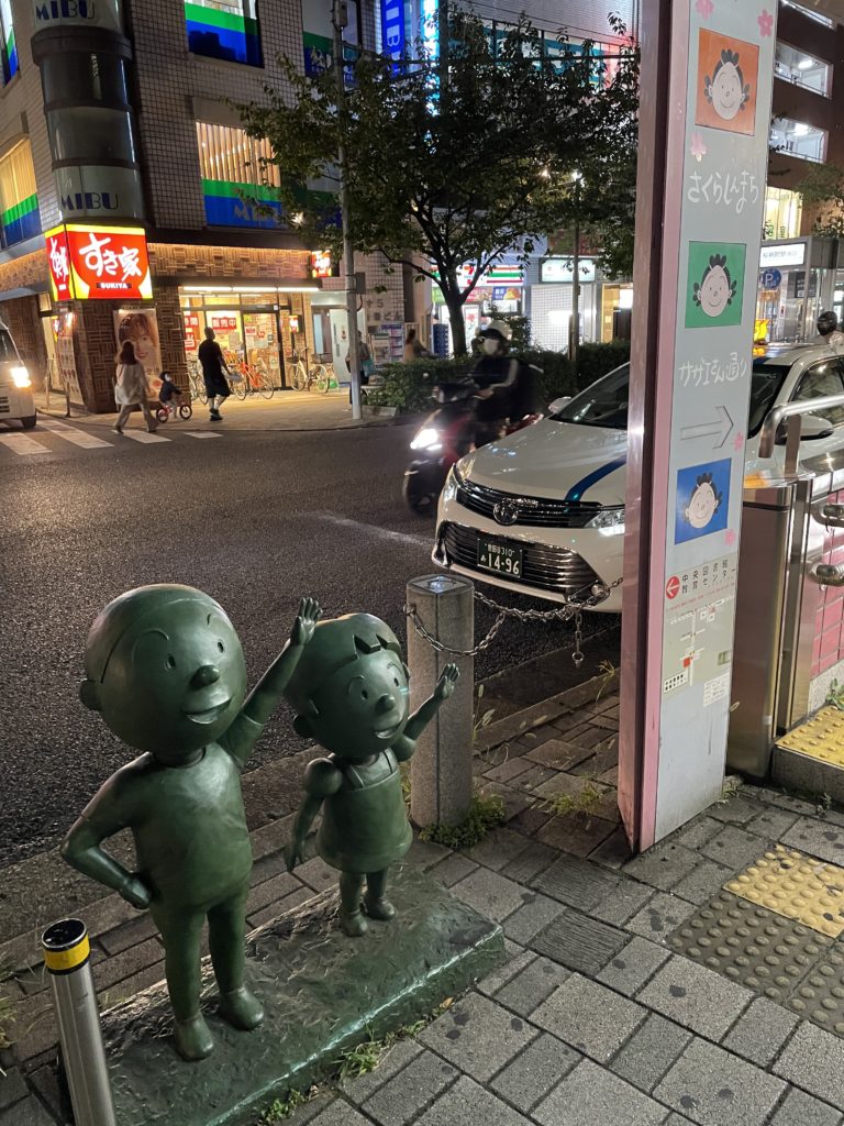 桜新町駅から徒歩で会社へ。その桜新町で始めにお出迎えしてくれるのが、カツオと...