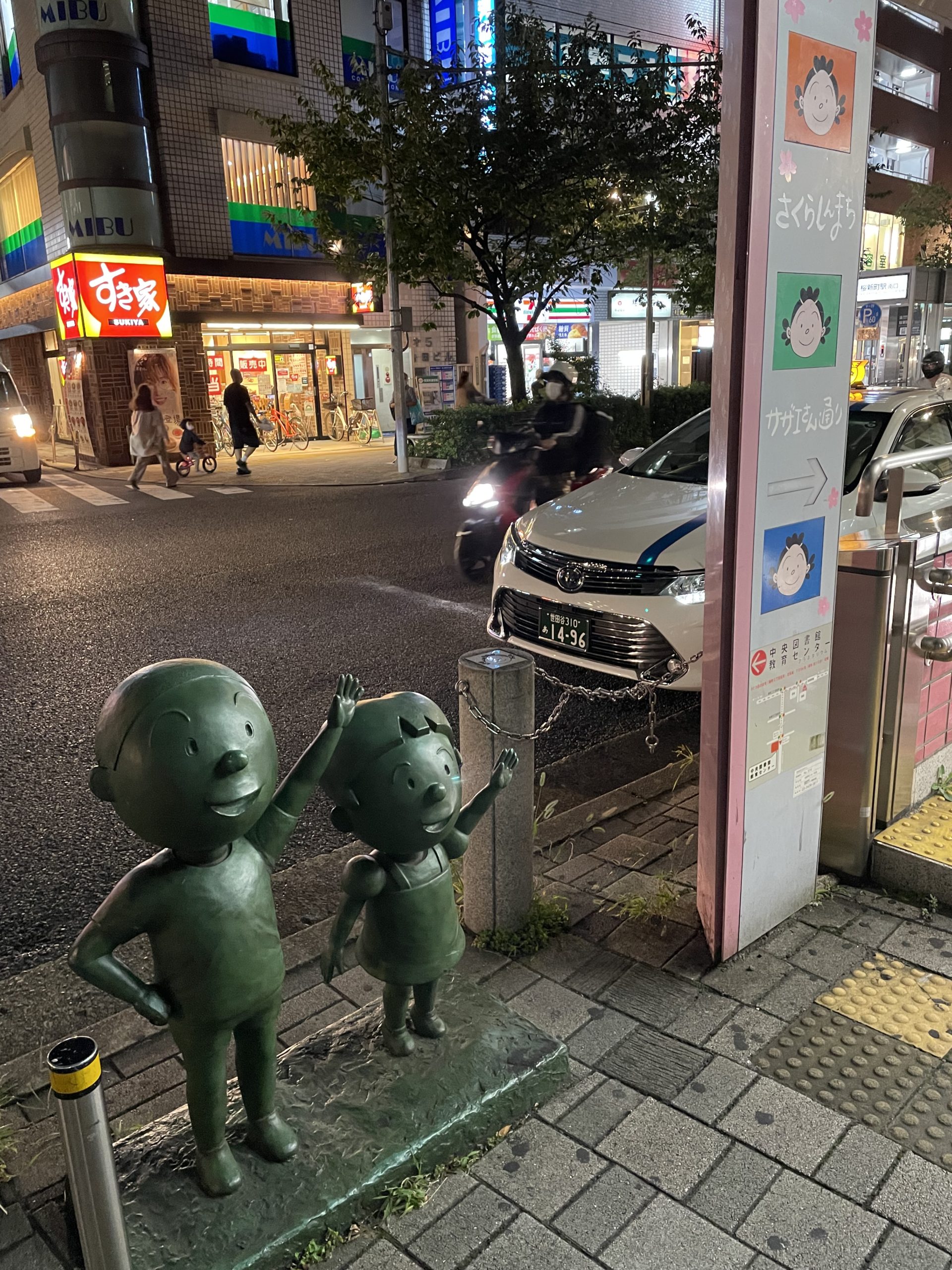 桜新町駅から徒歩で会社へ。その桜新町で始めにお出迎えしてくれるのが、カツオとワカメちゃん。長谷川町子が生まれた町として、記念館もあります。サザエさん通りはまだ行ってませんが、今度散策しようと思う今日この頃。