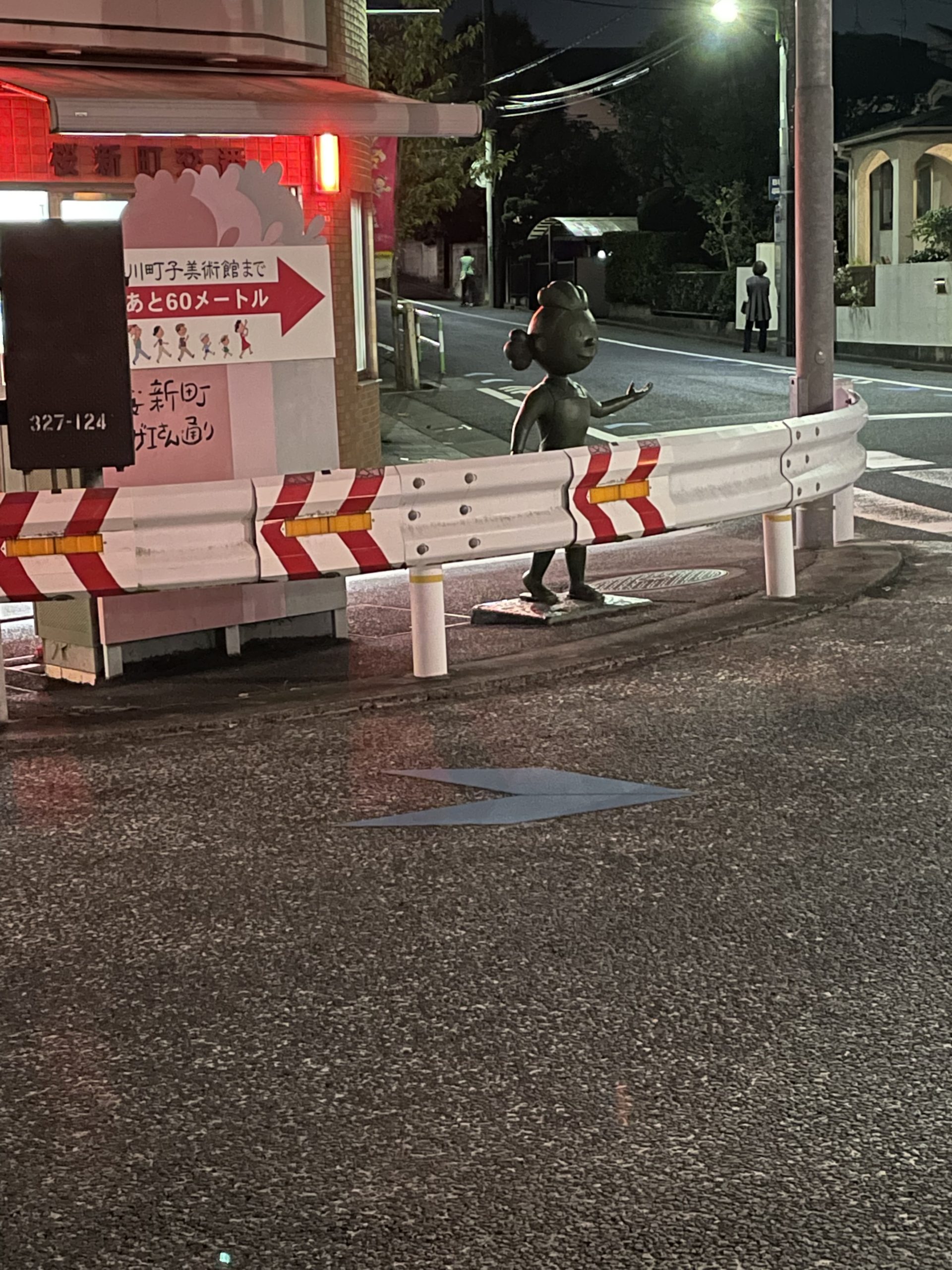 そのまま600m位進み、交番の前でサザエさんがお出迎え。案内と通り進みやっと到着!