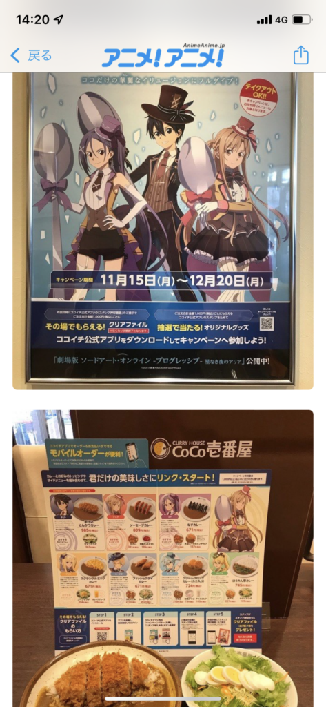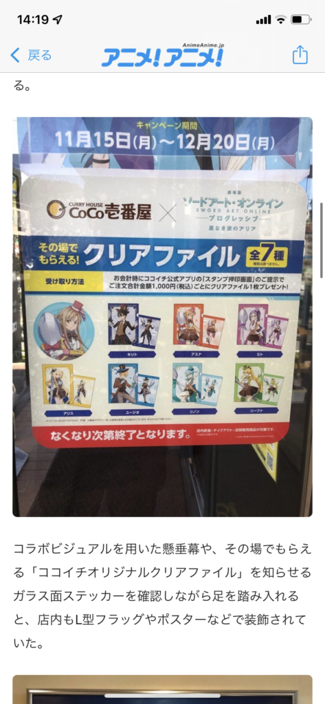 そう言えば、CoCo壱でもコラボ始まった。俺は先週たまたま行ってしまった。早すぎた?(笑)ファイル貰えるみたい。お子様でSAO好きな人いれば、是非CoCo壱へ!
