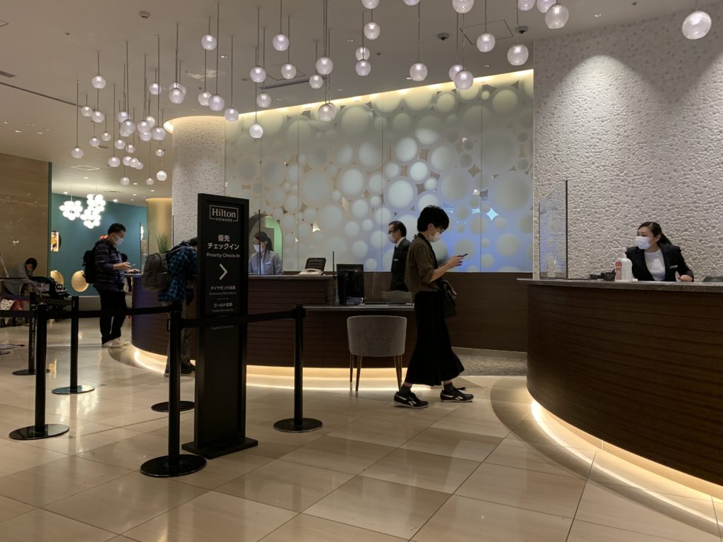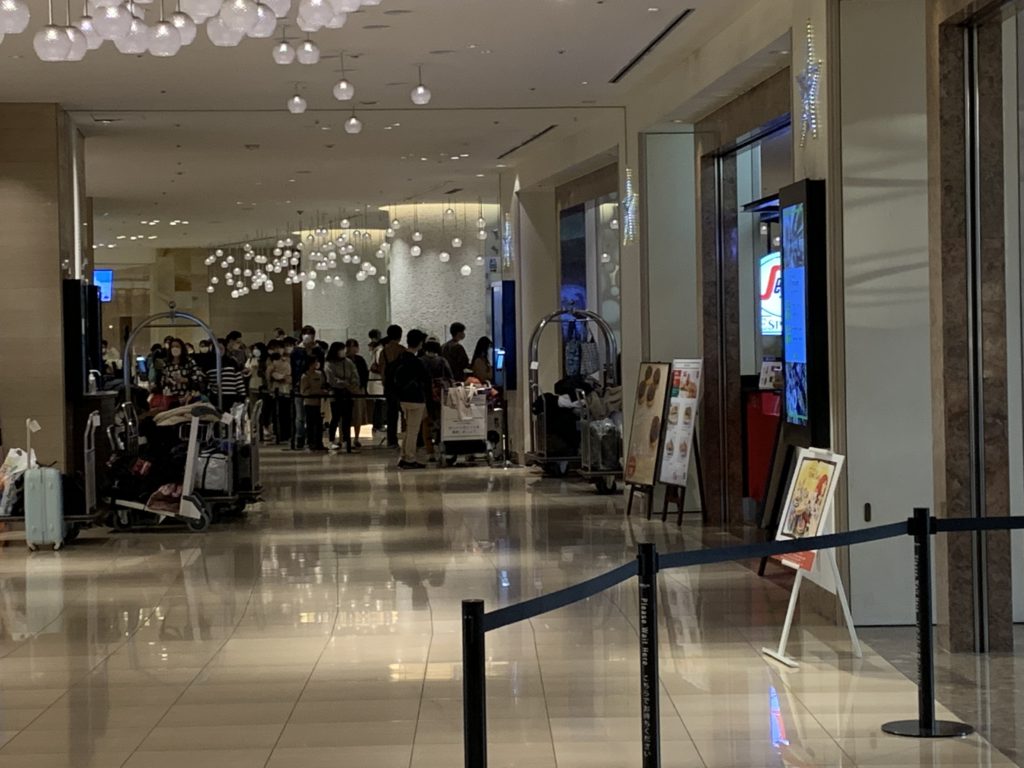 さて、フロント。チェックインです。ディズニー帰りの宿泊客で長い行列です。