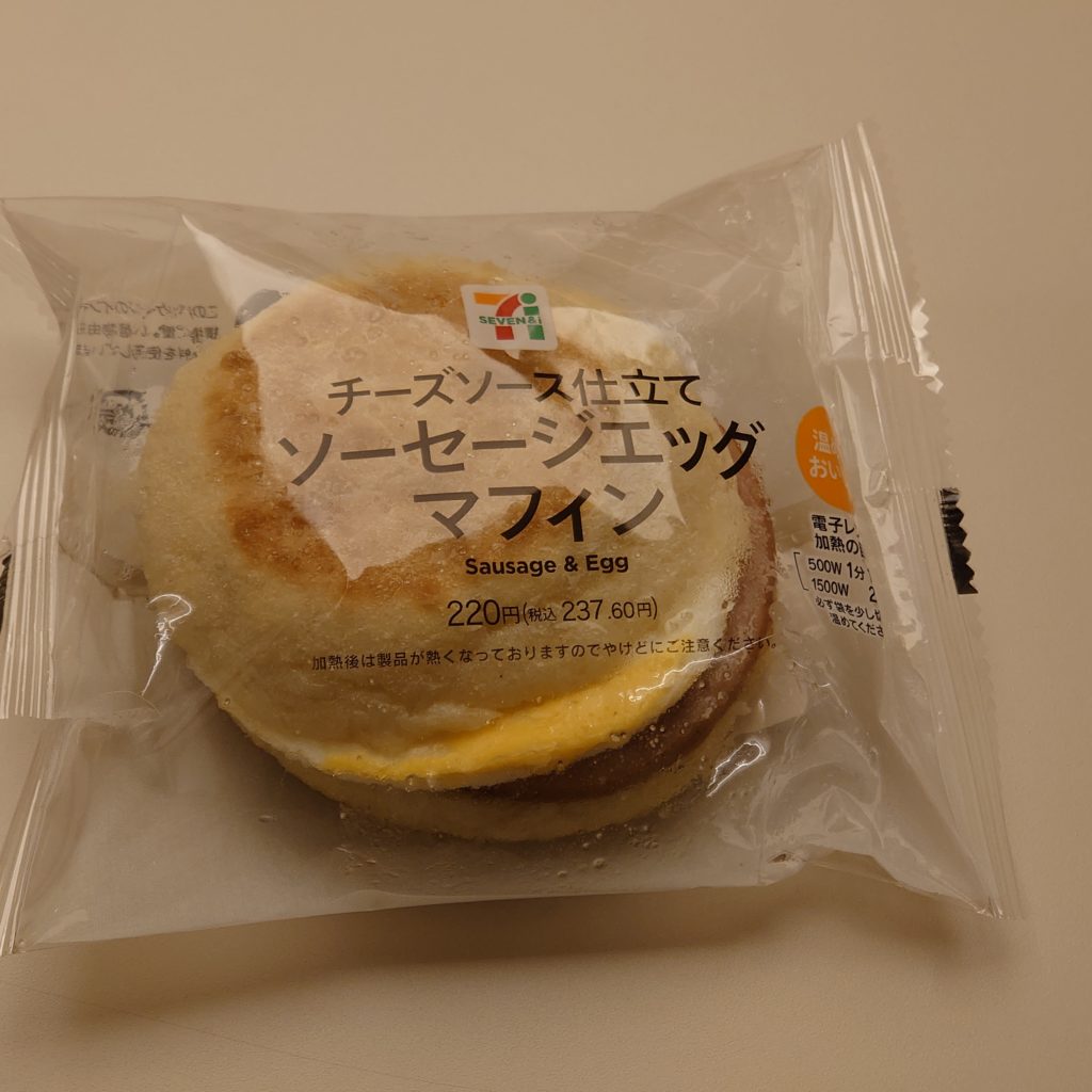 セブンイレブンのチーズソース仕立てソーセージエッグマフィン。 コンビニで昼買う... -