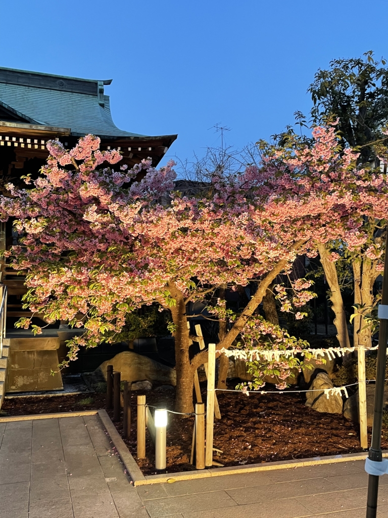 桜の木におみくじ引いたやつを結ぶ見たいです。夕方から夜にかけてだったので、行列があった理由まで分かりませんでした。