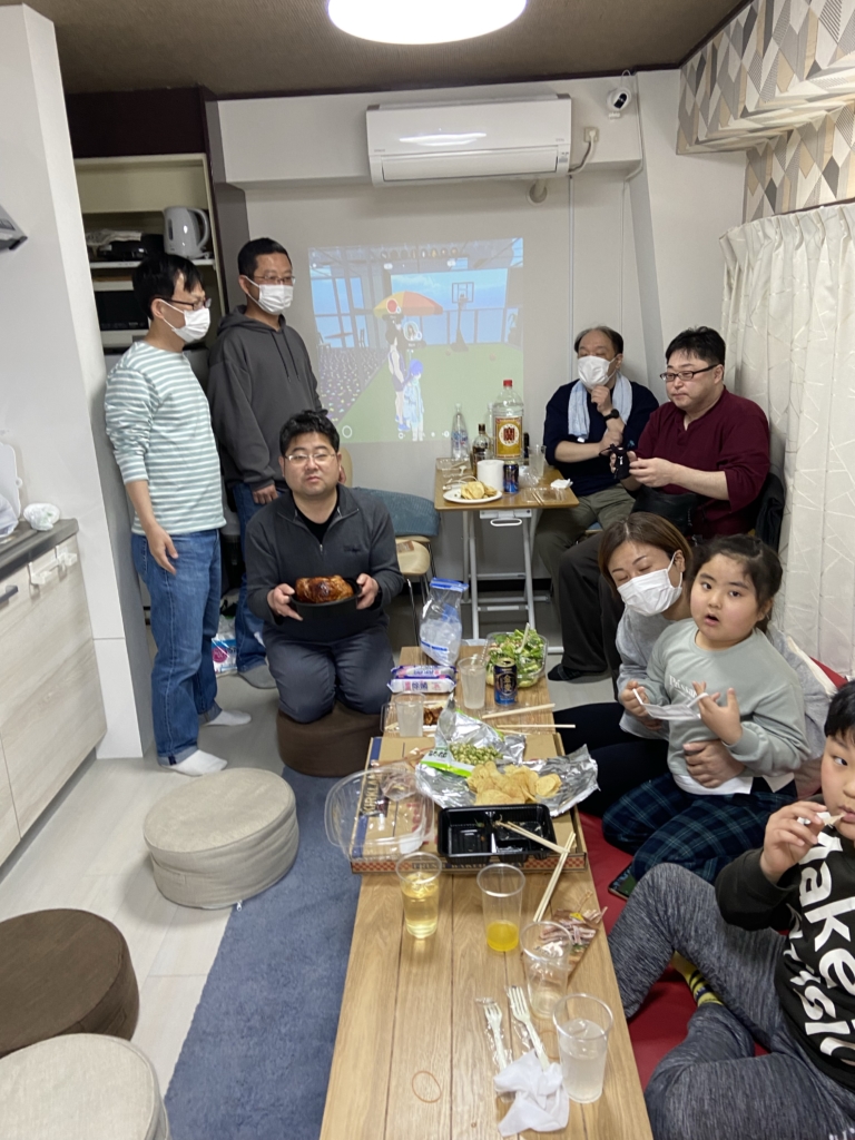 背景はプロジェクターで映したクラスターの画面ですな