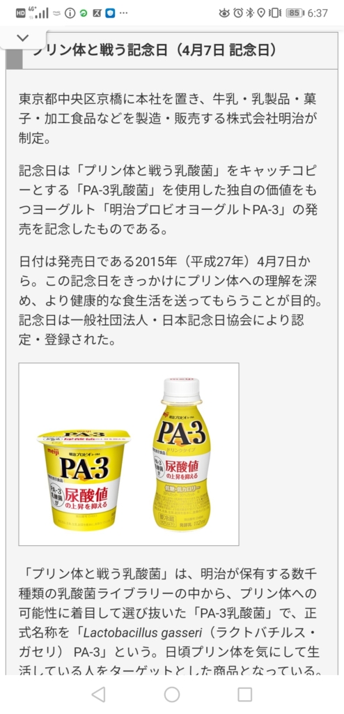 「PA-3乳酸菌」で有名な明治が尿酸値の上昇を抑えるヨーグルトの発売を記念して制定されました。