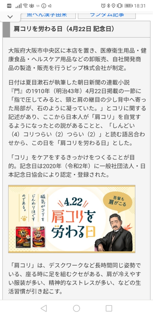 肩凝りを労る日って最近できたんだ。