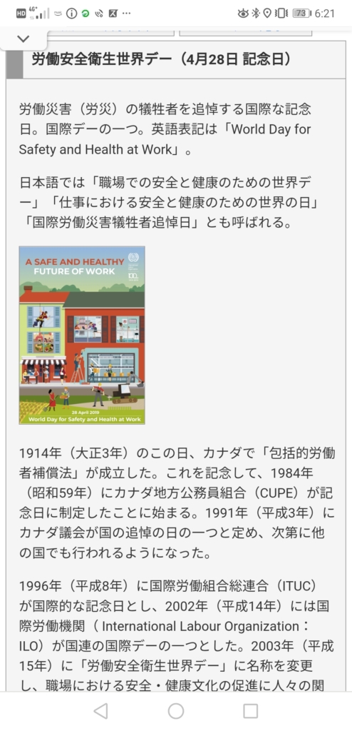 知らなかった。労災犠牲者を追悼する国際デーです。