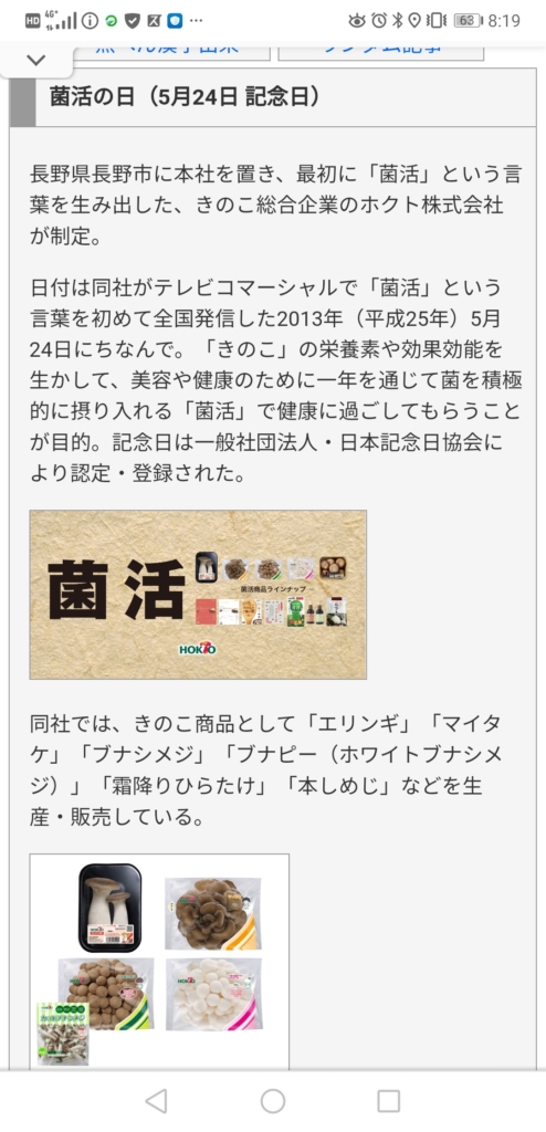 こちらはきのこ総合企業で有名な「ホクト」が制定。今夜はきのこ炒めをつまみに一杯やってはいかがでしょうか。(笑)