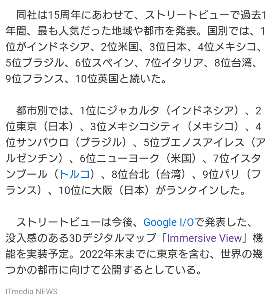 immersive Viewの実装が進むと現地に行かなくても、まるで旅してるかのような感覚が得られると思うから、