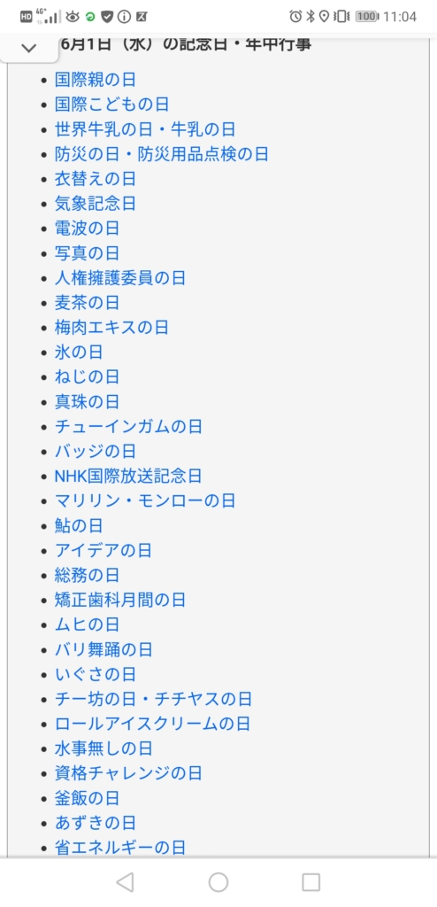 お疲れ様です。6月一発目の何の日です。今日はとても沢山の記念日があります。全ては紹介出来ないので、一部のみ。他の気になる記念日については、最後に一覧に載せておくので確認してみてください。