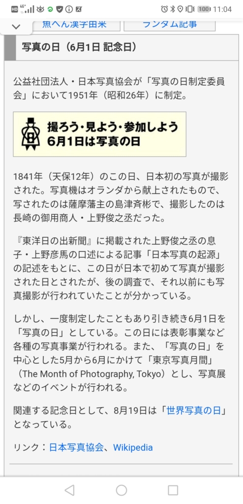 では、『写真の日』。初めて知りました。日本写真協会が70年以上前に制定。