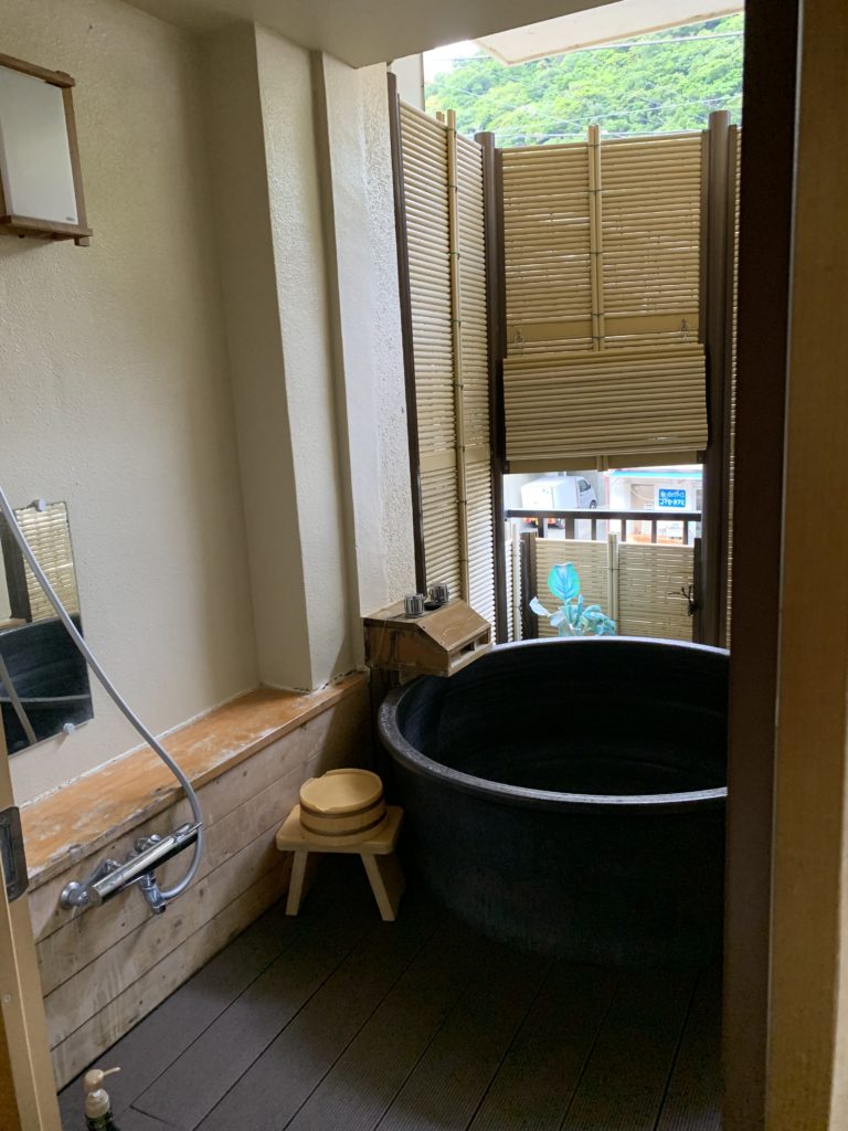 実は…今回は同料金で特別室を準備してもらっていたのです!!なので、トイレ、お風呂などが部屋付だったんだよー。これが標準じゃないのです。