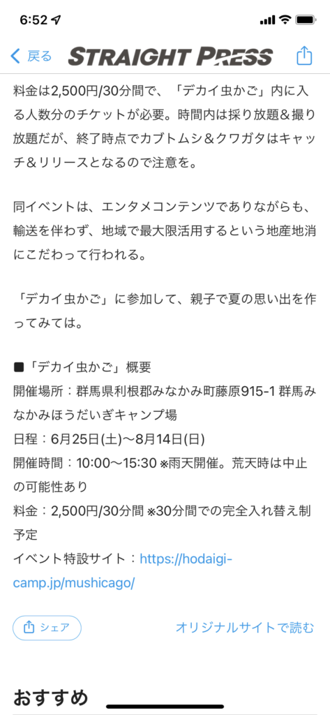 【のりと】カブトムシ!これは楽しそう❗️ 2022 6/14 日常 2022年6月14日 のりと 群馬です。巨大虫かごに入り、取り放題!持って帰れないけど。(笑)料金2,500円。良い思い出になるだろう! 日常 【のりと】多摩川ハゼ情報 【のりと】漢字読める? この記事を書いた人 のりと 糀谷の大看板。多彩なアイデアと牽引力、細やかな気遣いでみんなのフォローも抜かりなく。せっかちなのがたまに傷ですが…、そこはスピード感が大切と思ってるトップセールスの感性かな(笑)正に頼れるリーダー。 コメント コメント一覧 (4件) 持ち帰れないのは残念。 絶対に持って帰りたがる 返信 うん。よい体験だね。 持って帰れないのは残念だけど、だったらもう少し安くても良いかなぁと思ってしまった。 返信 今はカブトムシ捕まえるのも大変だもんね。 子供に体験させるのはいいことだね。 返信 十分な成功体験を味わってもらうことができそうなイベントだね。1匹でも持ち帰れたら尚良かったかも。 返信 コメントする コメントをキャンセルコメント ※ 名前 メール サイト 次回のコメントで使用するためブラウザーに自分の名前、メールアドレス、サイトを保存する。 email confirm* post date* 日本語が含まれない投稿は無視されますのでご注意ください。(スパム対策)