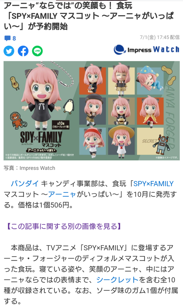 「SPY×FAMILY」の人気が想像以上で、巷でも色々なグッズやコラボアイテムが出てますが…、これはものすっごく欲しい!!