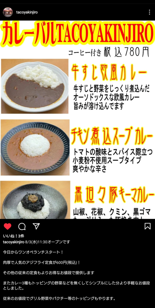 ミスドの隣のタコヤキバル カレーランチが始まったそうです 行くか行かないかはそ...