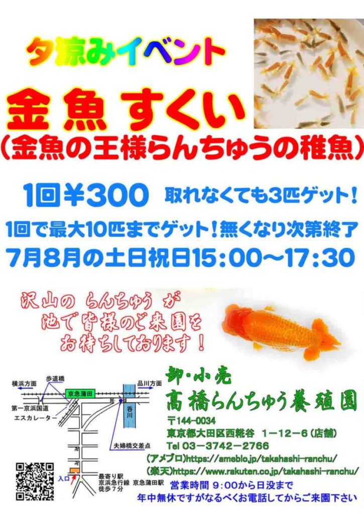 【京急蒲田】7月8月の土・日は高橋らんちゅう養殖園でらんちゅう稚魚の金魚すくい! | おーたふる 大田区...