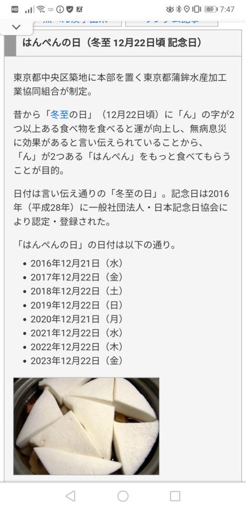 『はんぺんの日』です。当時の日にんの字が2つ以上ある食べ物を食べると運が向上するようです。知らなかった。