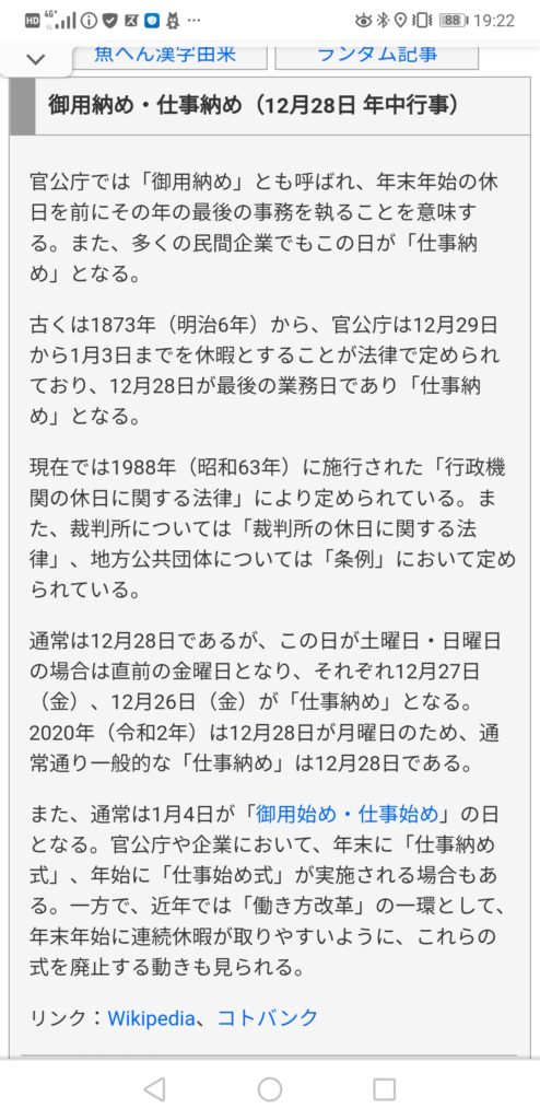 今日は『御用納め・仕事納め』です。
