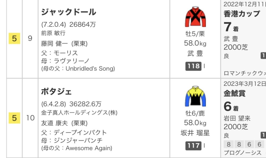 難しいのがジャックドールの取捨。逃げてナンボの馬です。最近、逃げずに控えて進めるレースがをしてますが決め手無く負けてます。今回は逃げそうですが、買いません。代わりに去年の覇者ポタジェを買います。