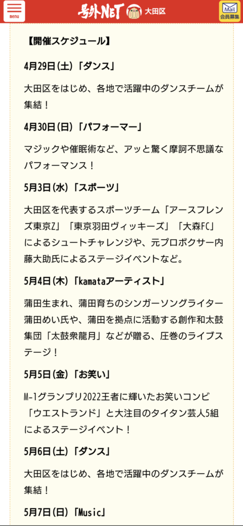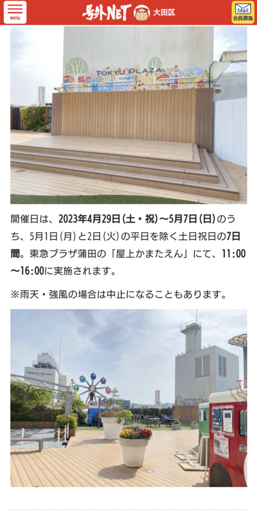 【あき】大田区情報 2023 4/24 日常 あきひと 2023年4月24日 アキ スマホ見てたらこんなのがありました。 GW予定ない人は参考にしてね! 出店もあるみたいだよ。 日常 あきひと 【のりと】これ、アジなのか? 【とる】ひさしぶりのほのぼの日記 この記事を書いた人 アキ 言わずと知れた神、その名も『ガッツ神』。 糀谷全体の幹事も任せられる存在。夜は早く寝ちゃうけど、朝は早起き。 いつでも決めるぜ!!焼酎一気!!とても仲間思いの優しい人。 コメント コメント一覧 (7件) 東急の屋上あまり行ったことないなぁ。 お笑いが来たりとすごいねぇ。 3日のスポーツは内藤大助も来るんだねぇ。 返信 色々とイベントやるようになってきたね。 返信 懐かしなぁ~! 駅ビルの屋上施設って、なんかノスタルジック~! エモっ! 返信 ほぇー。色々やるのね。昔ここな牡蠣小屋あったけど今はないのかな? 返信 ここの観覧車、こんなに小さかった…か?🎡 返信 ウエストランド来るの!?すごーい イグチんランド知ってる人がどれだけいるのか…(笑) 返信 知らなかったなぁ。 こんな企画やってたんだね(゚o゚; 東急も金を掛けて人集めしてるんだね。 今年は去年よりも人出が良さそう。 返信 コメントする コメントをキャンセルコメント ※ 名前 メール サイト 次回のコメントで使用するためブラウザーに自分の名前、メールアドレス、サイトを保存する。 email confirm* post date* 日本語が含まれない投稿は無視されますのでご注意ください。(スパム対策)