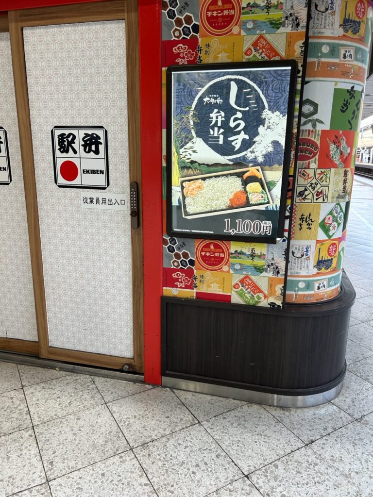 東京駅は地下通路にも駅弁屋がありますが、新幹線ホームにも小さいのがあります。