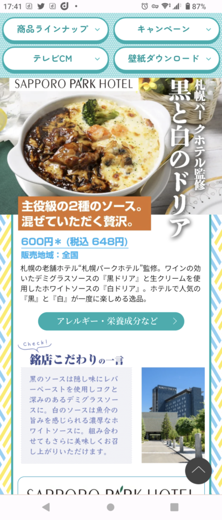 今回は札幌パークホテル監修の黒と白のドリアを購入しました。値段は税込み648円。高いね〜