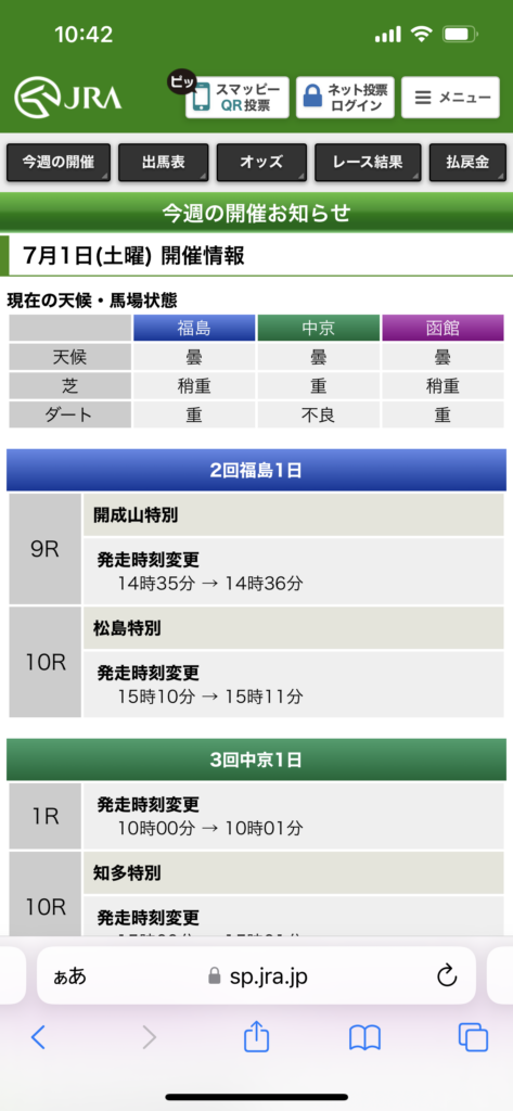 福島は雲。6Rはダート。馬場状態をwebで確認。ダートは重馬場。雨吸って重いやつ。