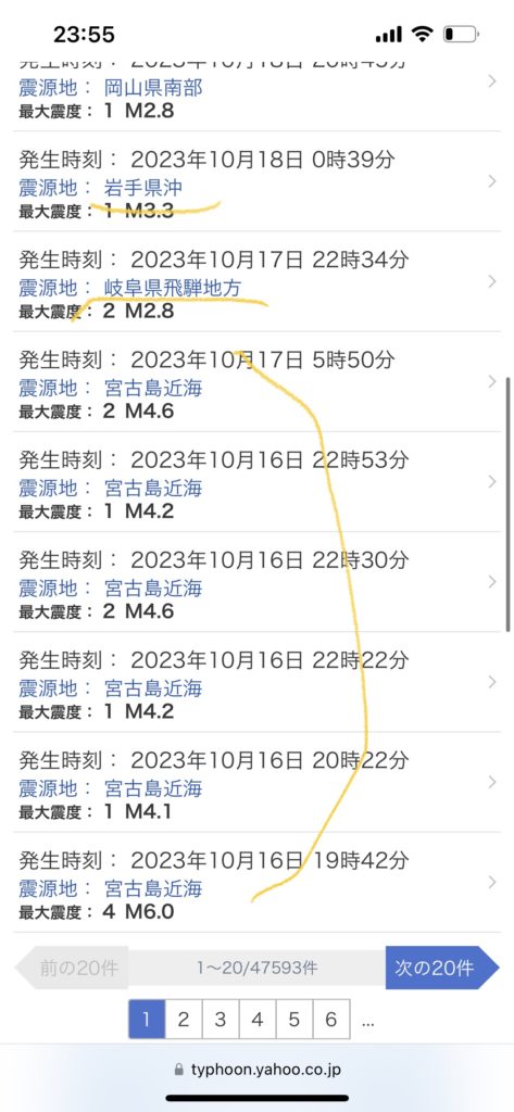春樹には用事あって会ったので話したけど、宮古島がある琉球海溝での群発は日向灘辺りにでると伝えたのが2日前。
