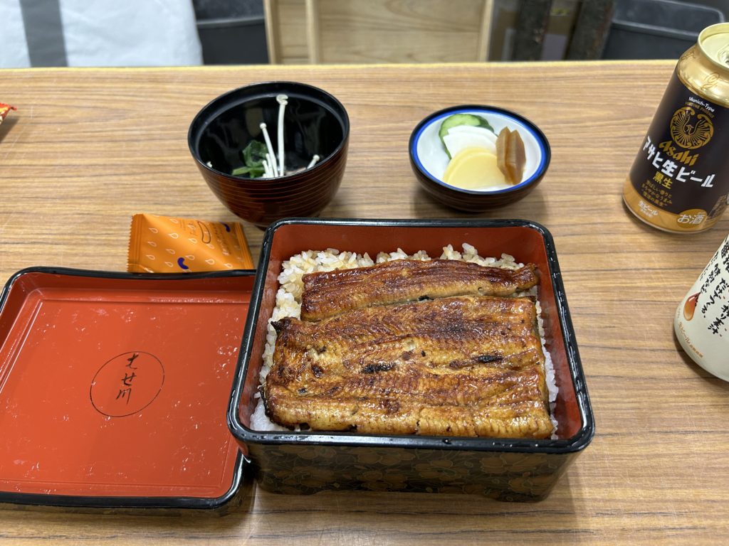 平和島駅前のはせ川の鰻重。肝の吸い物付き。美味かったー。