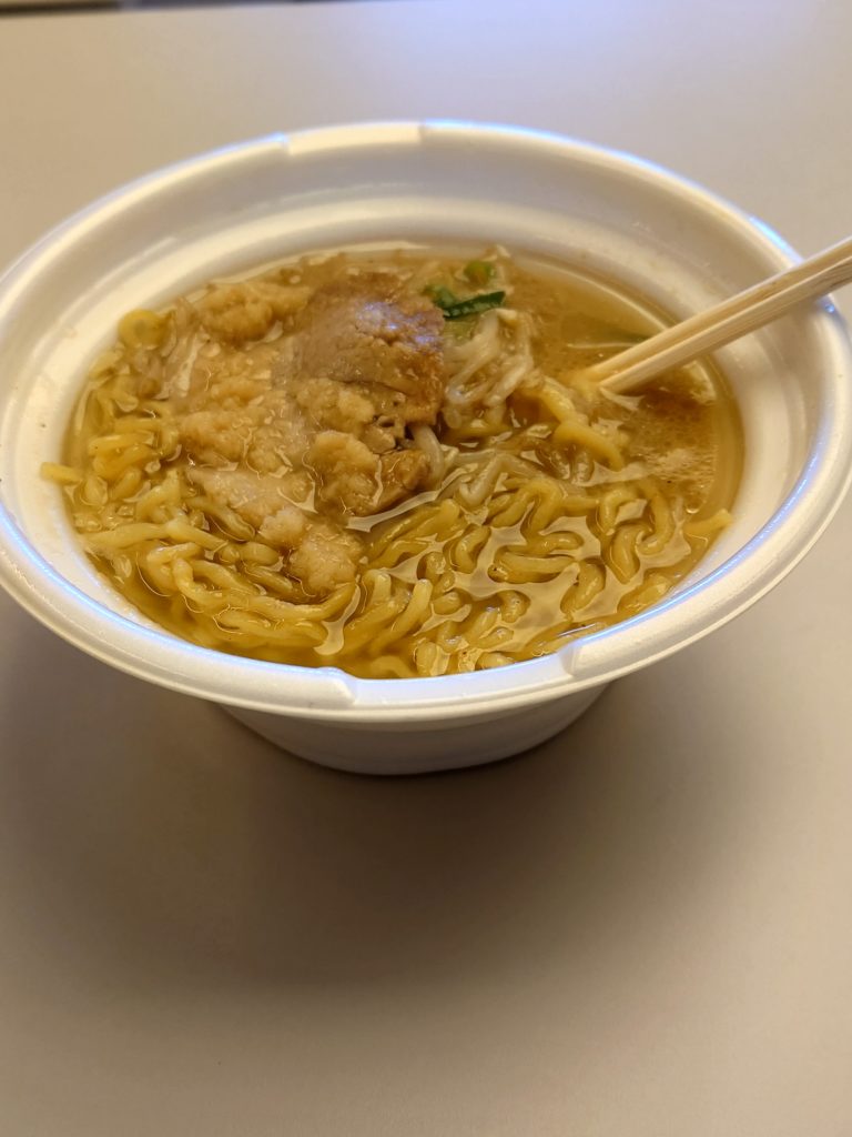 開けてすぐ香ばしい味噌の香り。食べてみたら生姜が効いていてとても美味しかった。普段はつゆは飲まないんだけど、久し振りに飲んでしまった。
