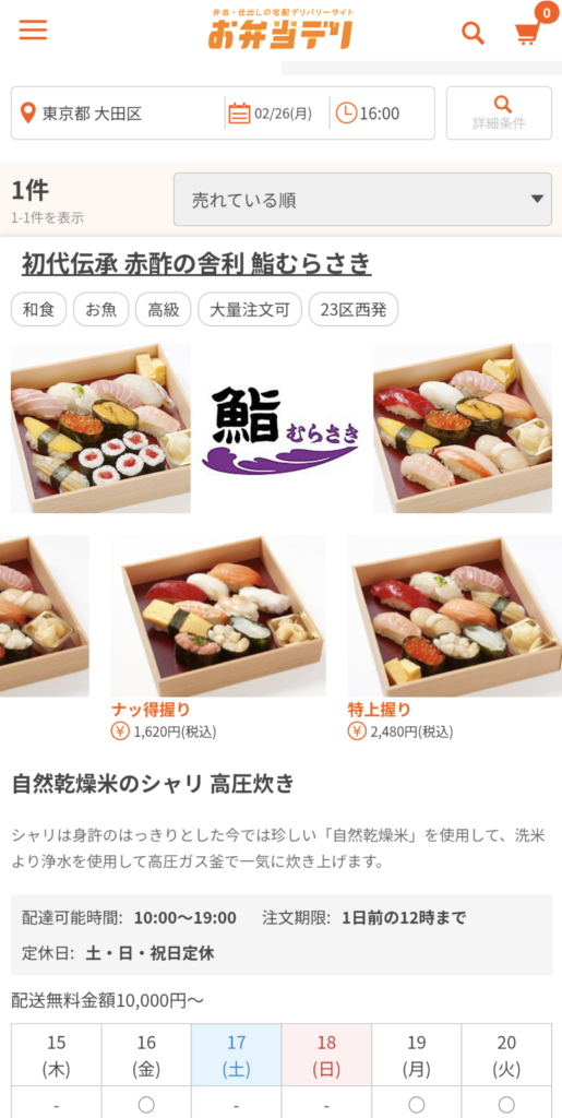 お弁当デリという弁当デリバリーサイトからお店を選択してるんだ。今回は寿司を選んだみたい。
