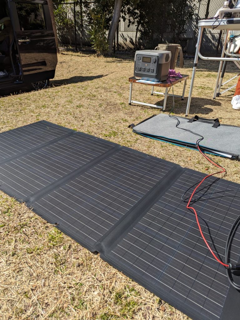 早速ソーラーパネルで充電してみる