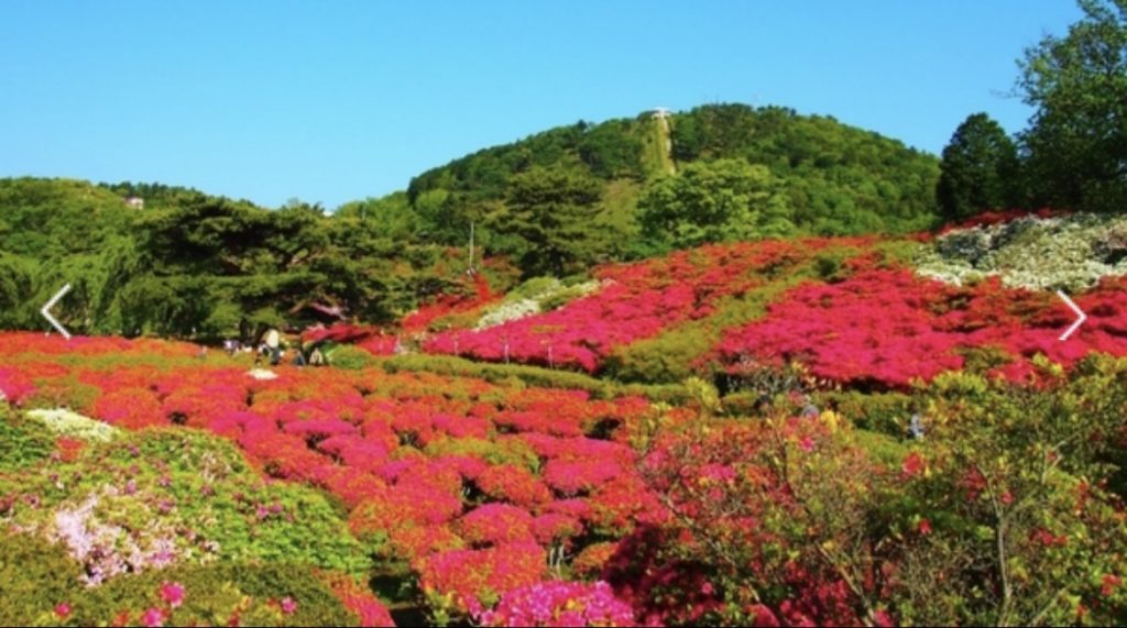 山自体は大室山と比べると小さいですが、山頂見渡す景色は良いですね。あと、この時期だとツツジが綺麗咲いてます。