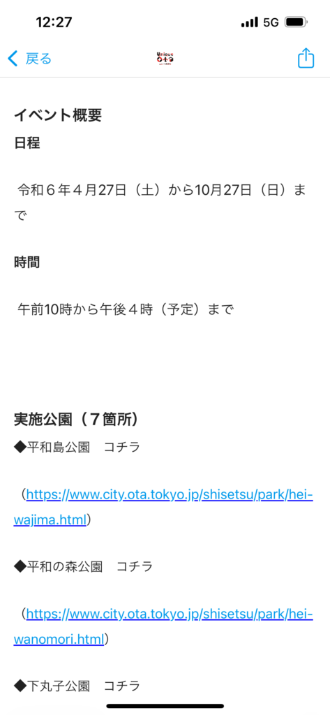 【のりと】大田区公園情報❗️