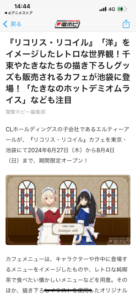 リコリスリコイル。カフェ、期間限定オープン。 おれと娘も連れてって。(笑)