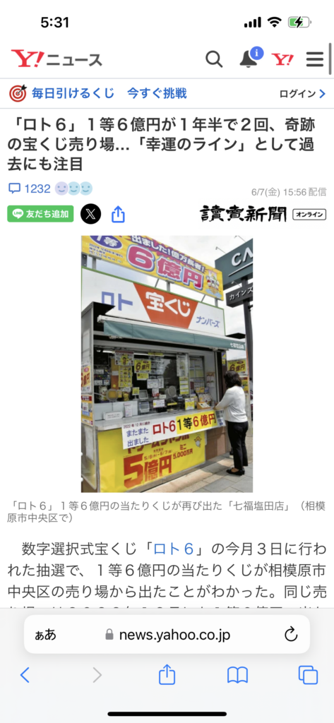 宝くじ、相模原が熱い!相模原、愛川で連発で出てるらしい。近くにまっちゃんが住...