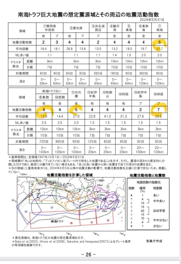 ちなみに南海トラフに相当する四国、愛知。
