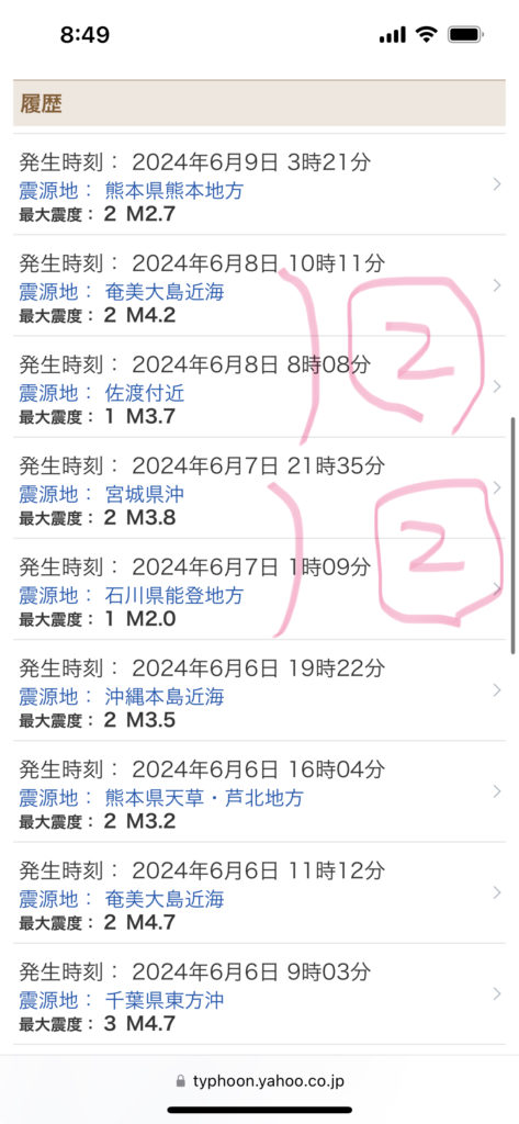 6/7 有感地震 2回