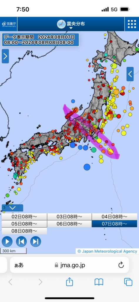 南海トラフの東側に🔵並ぶの珍しいから、ブログ書こうかなと思ってスクショしといたのさ。