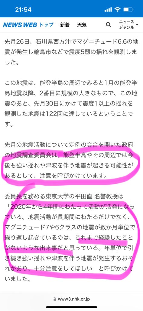 今は群発地震がとまり、有感地震がとまった。