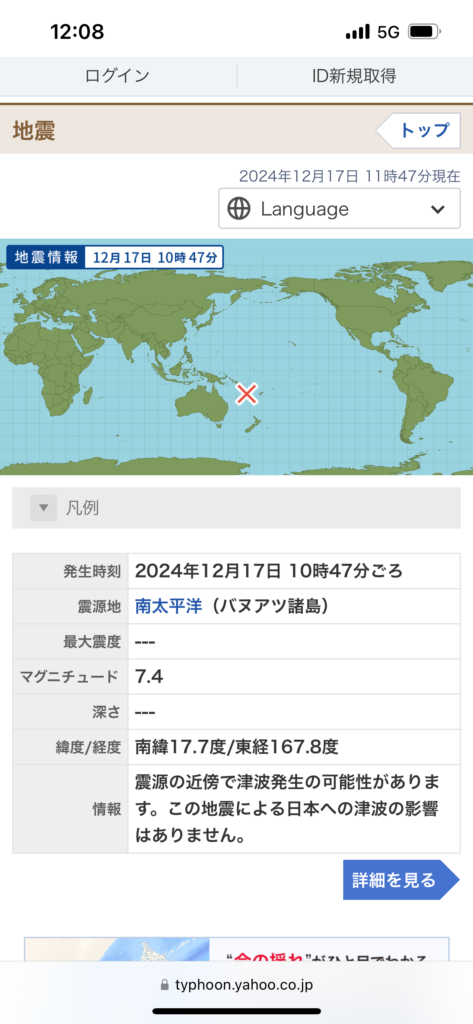 【のりと】バヌアツM7.4発生‼️